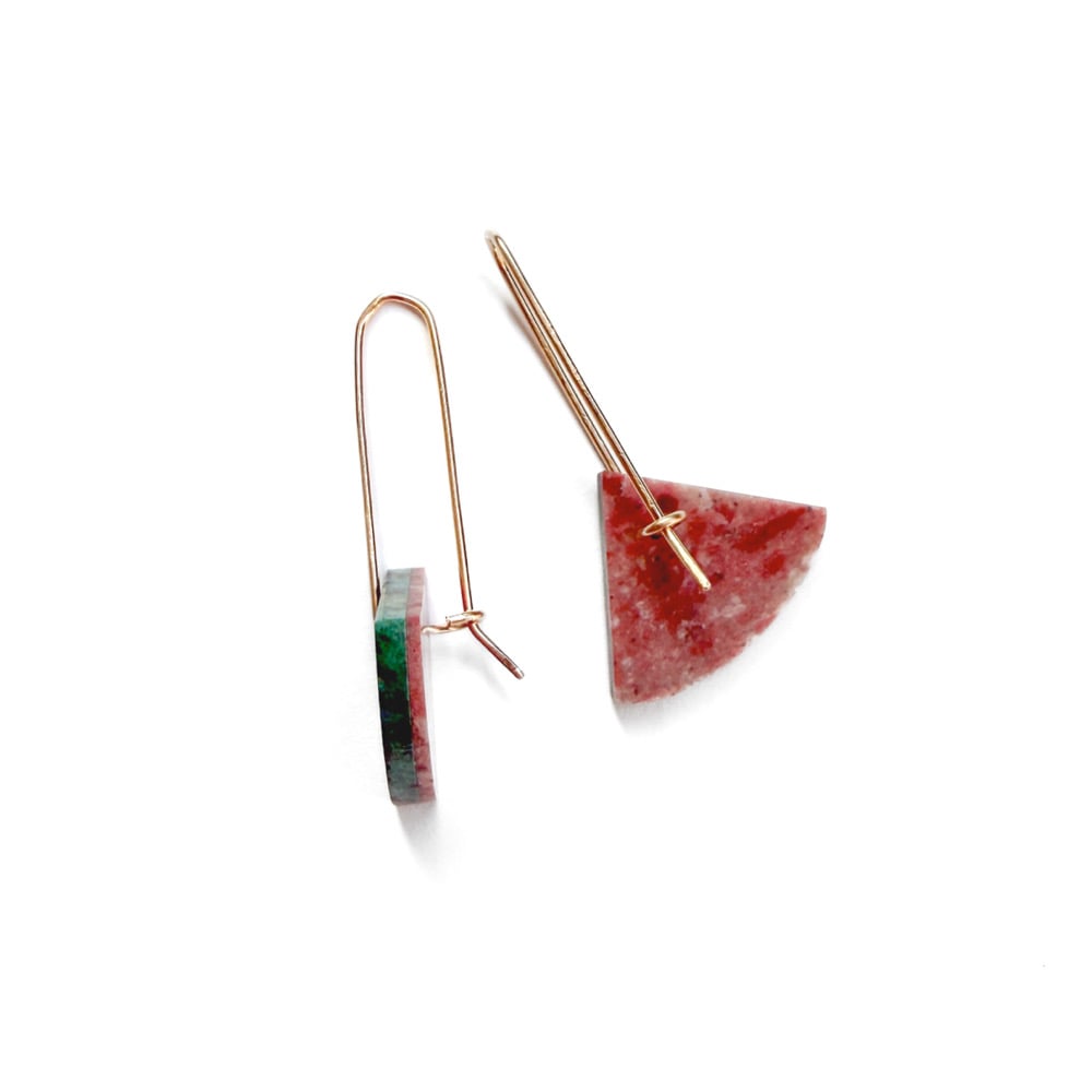 The stones are 24mm wide and hang 38mm on hammered 14k gold fill wire. The earrings weigh 3 grams each.