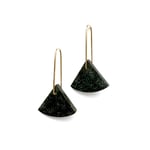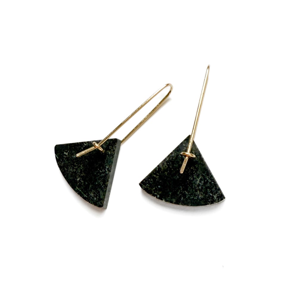 These earrings are cut from a beautiful black gabbro from the shores of Wisconsin. This material was created in a great rifting event about 1.1 billion years ago.