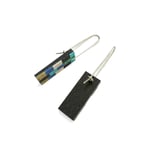 These intarsia earrings are cut from epidote, lapis, basalt, malachite, sinter, and turquoise. They are backed with (1.1 billion year old!) basalt for strength.